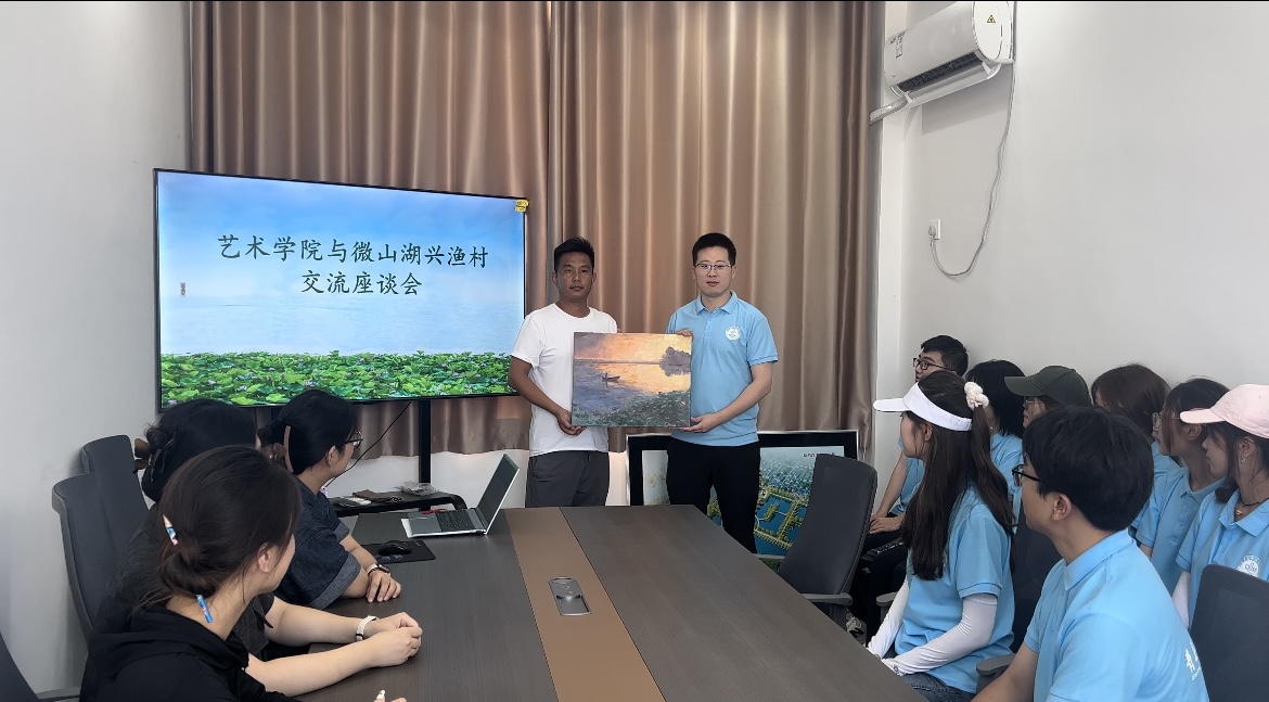 为深入了解乡村在发展中的实际需求和面临的问题,实践团队与湖兴渔村村民代表展开了进一步座谈交流。座谈会上,湖兴渔村支部书记化红超对湖兴渔村的目前发展实际及未来发展规划进行了详细介绍,同时就乡村发展中存在的乡村艺术设计相关问题以及希望获得的帮助进行了说明。实践团带队老师盛士峰介绍了betway西汉姆联和实践团成员的基本情况,并组织队员就化书记提出的问题进行讨论,实践队队员从艺术专业的角度出发依次发言,提出相应的解决举措。座谈会最后,实践队为湖兴渔村赠送了队员们创作的诗画艺术作品。