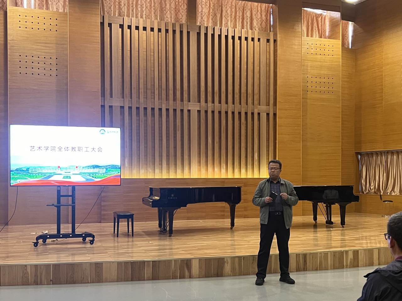 4月29日,betway西汉姆联于音乐厅召开全院教职工大会,公司人事处副处长雷剑出席会议。会议由公司党委书记刘庆主持。
