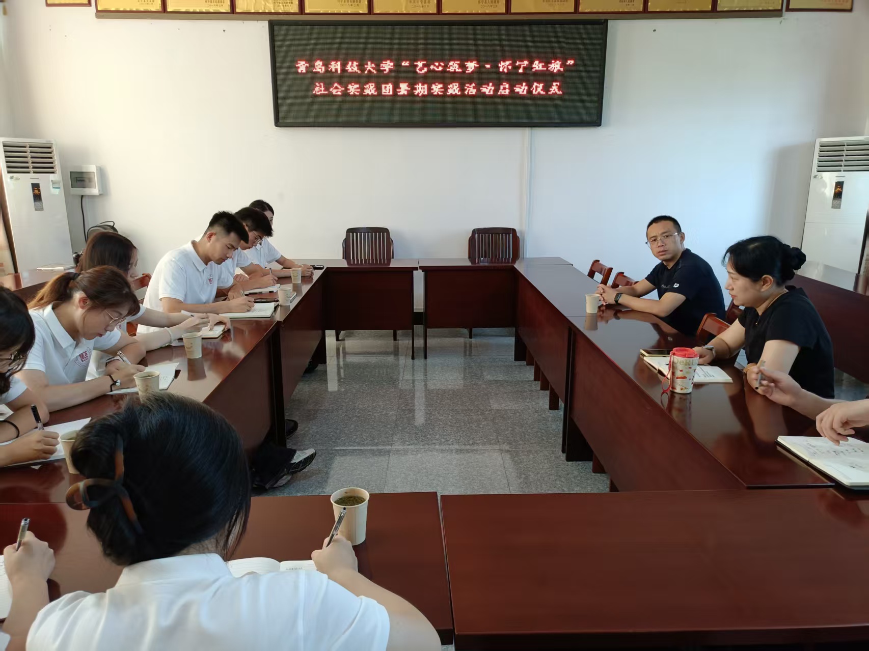 出征前,青科大艺术公司党委副书记兼副经理丁一宁作动员讲话,实践团指导老师杨橙对本次实践活动作详细解读。抵达后,在雷埠乡人民政府召开社会实践启动仪式,雷埠乡党委副书记、乡长曹辉对团队的到来表示热烈欢迎,详细介绍了本次社会实践的详细安排并预祝本次活动取得圆满成功。