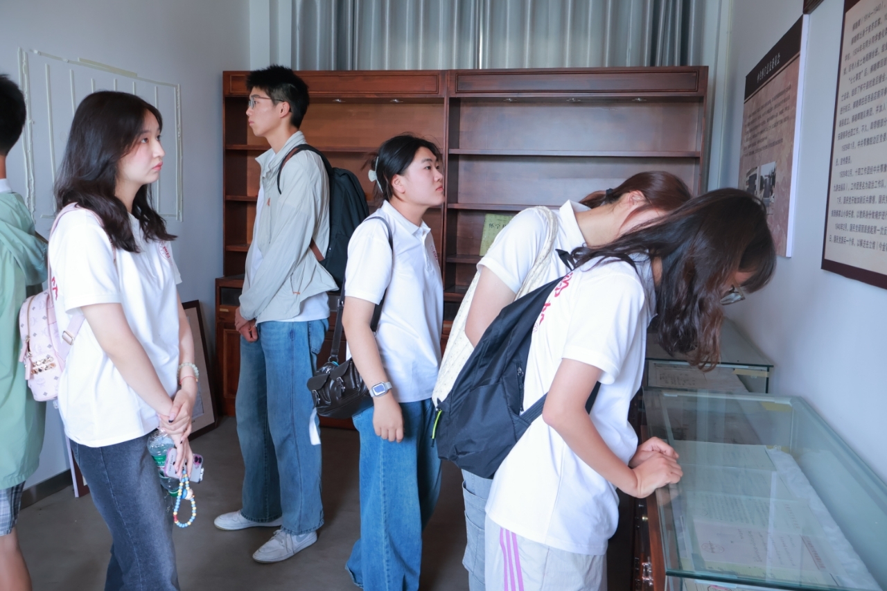 在安徽怀宁县石牌镇这片浸润着革命精神的土地上,实践团怀着崇敬之心走进郝晓辉烈士纪念馆。一段尘封却永不褪色的红色记忆,在烈士后人饱含深情的讲述中被重新唤醒。郝晓辉烈士1934年投身革命,以青年之躯肩负救亡重任,1940年在担任中共怀宁总支书记时,被逮捕杀害,年仅26岁。纪念馆内,泛黄的史料、珍贵的遗物无声诉说着那段烽火岁月。实践团成员聆听其后人讲述先辈如何在家国危难之际挺身而出,如何在抗战斗争中顽强抵抗。当讲到烈士就义前留下的铮铮誓言和未竟的理想时,现场肃然无声,唯有信仰的力量在年轻的心灵中激荡回响。恰逢世界反法西斯战争胜利80周年,他们触摸着历史的脉络,不仅读懂了郝晓辉烈士“革命理想高于天“的赤诚,更感受到传承红色基因、担当时代使命的千钧重量。在石牌镇的红色热土上,青春追寻信仰的脚步愈发坚定。