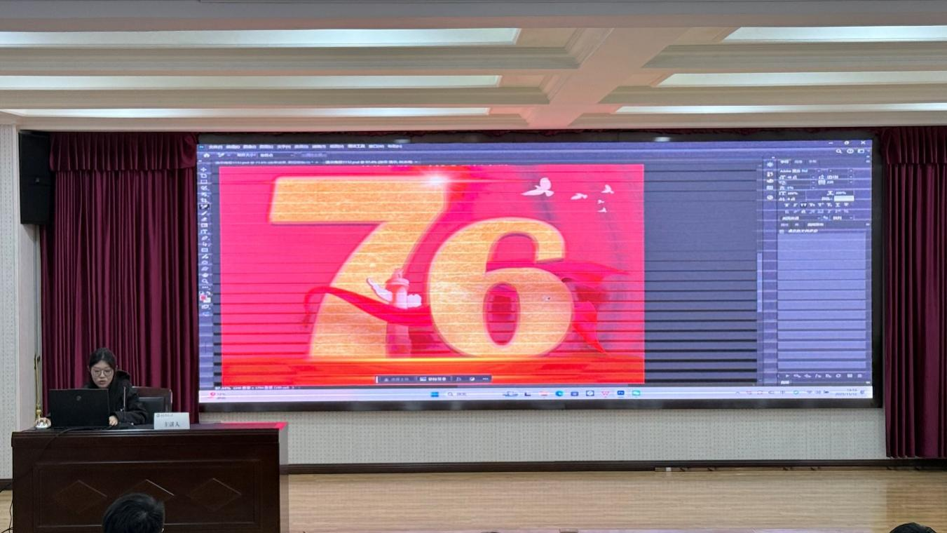 betway西汉姆联研究生会设计部成员姜嘉欣、范木林为现场同学带来PS与即梦AI实操体验,系统讲解PS工具使用、蒙版应用等基础技能,分享排版设计原则与即梦AI生图提示词公式,助力青年提升视觉表达能力。