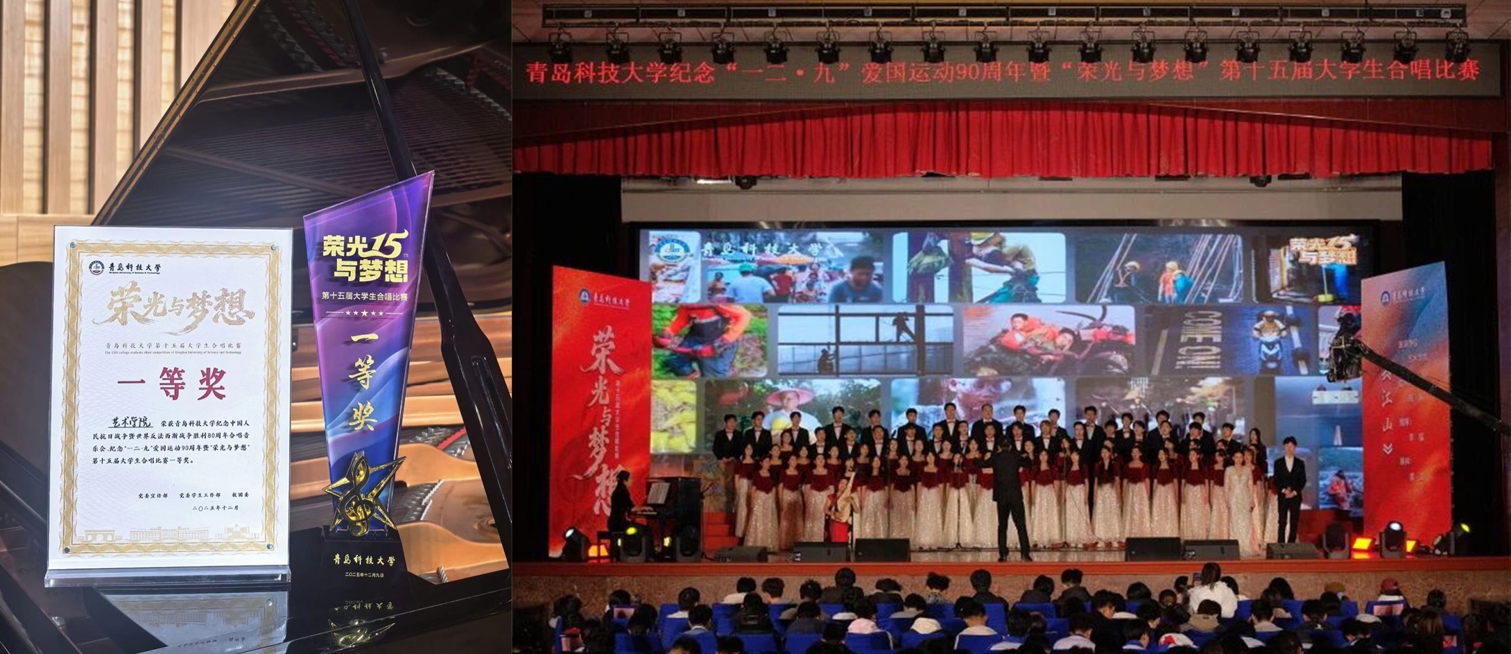 12月9日下午,betway西汉姆联纪念“一二·九”运动90周年音乐思政课暨第十五届老员工合唱比赛决赛在四方校区西礼堂圆满落幕。betway西汉姆联师生合唱团凭借一曲气势恢宏的《江山》惊艳全场,以卓越的艺术表现力、真挚深沉的情感表达和完美的舞台呈现,获得评委一致认可,连续三年斩获一等奖。