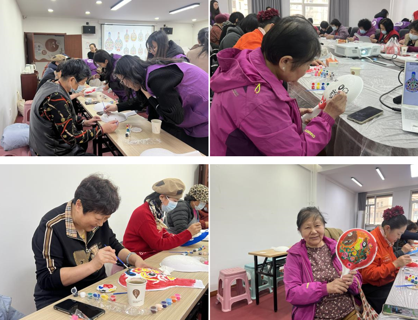 在志愿者的悉心指导下,居民们充分发挥创造力,将传统纹样与现代审美巧妙融合,创作出兼具艺术性与个性化的马勺脸谱作品。