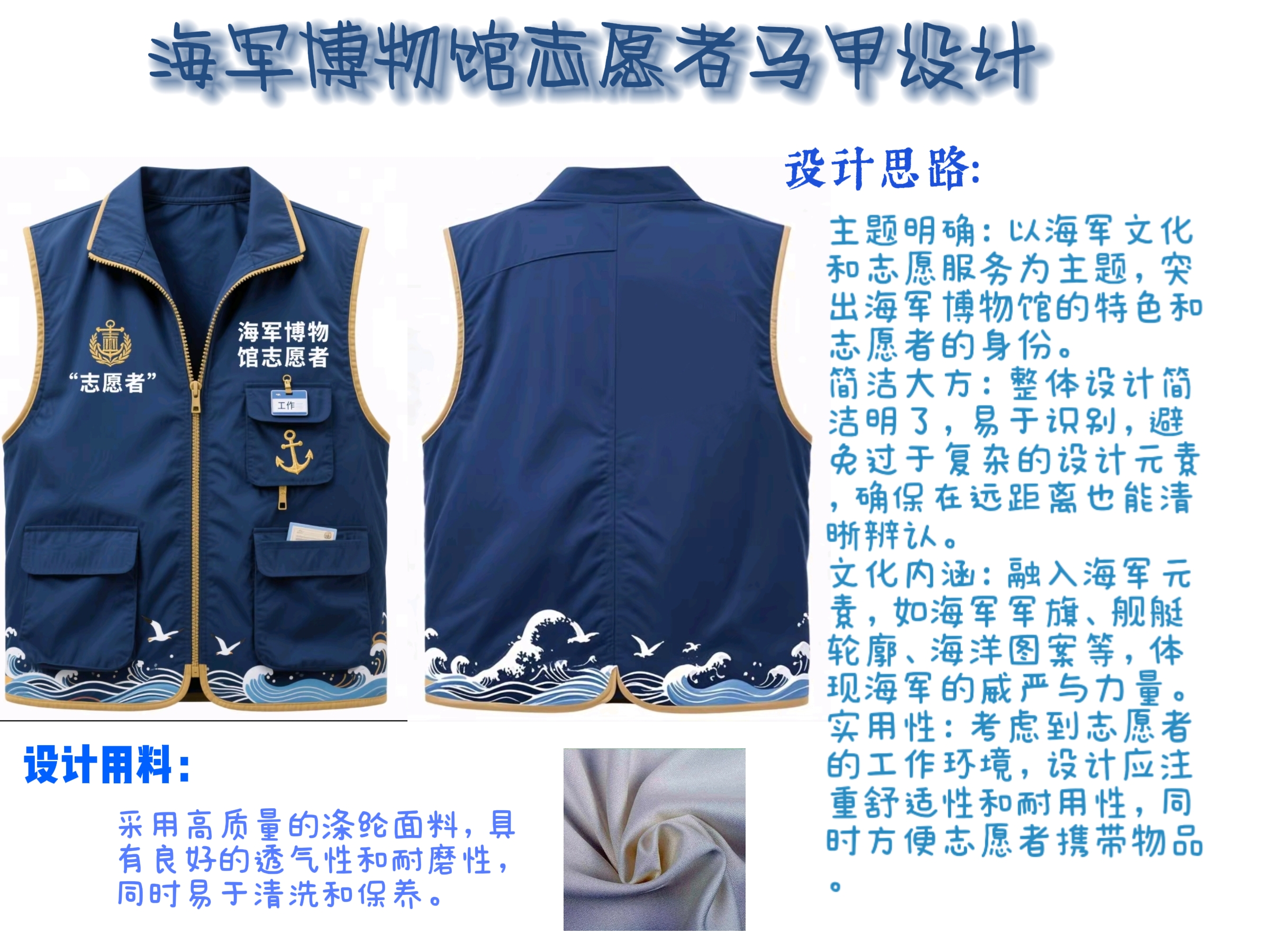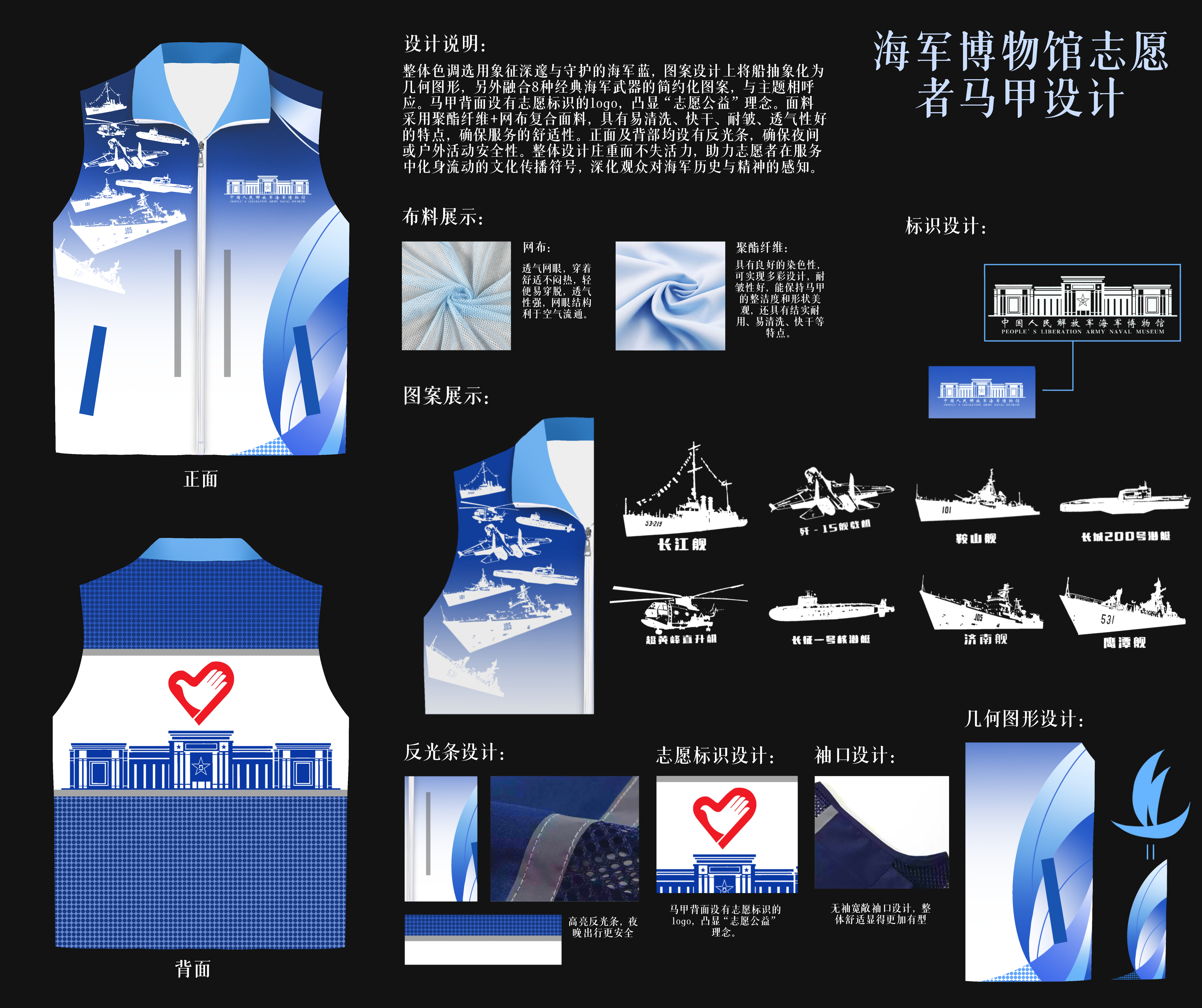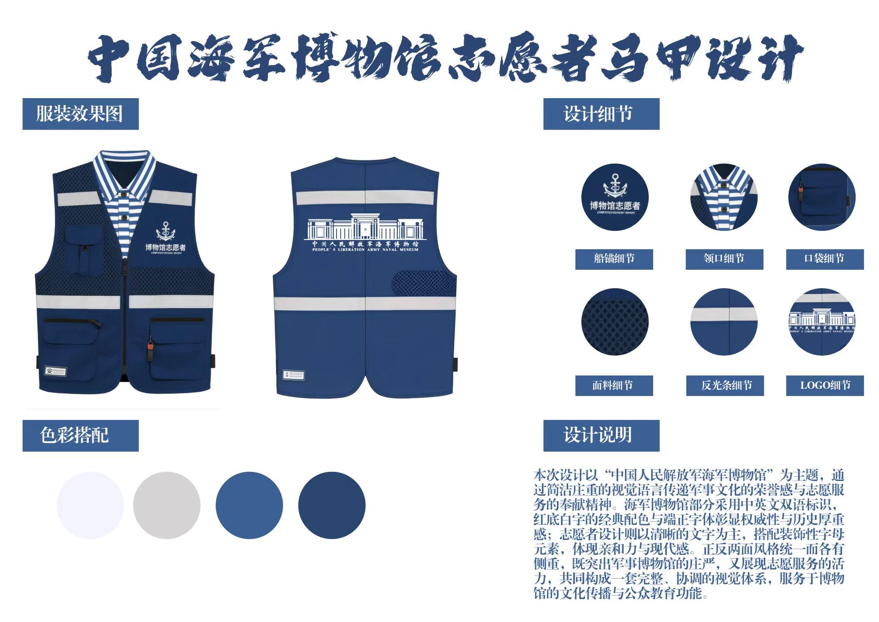 为庆祝人民海军成立76周年,弘扬和传承伟大抗战精神,betway西汉姆联联合中国人民解放军海军博物馆成功举办“创‘艺’无限,海魂闪耀”海军博物馆志愿者马甲优化设计主题征集活动。