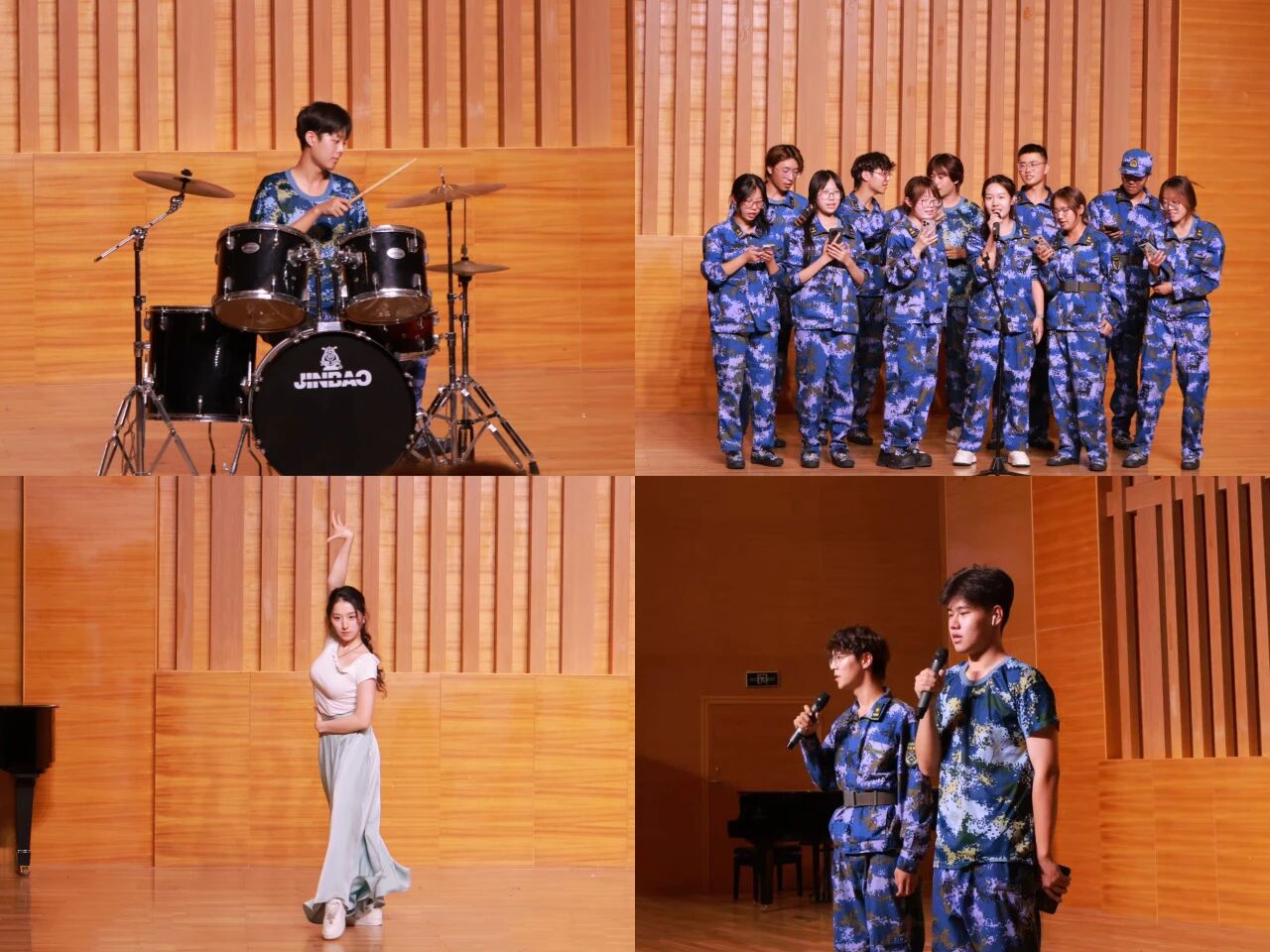 为增进同学间感情,让艺术特长在军训中绽放光彩,公司特别举办“破冰音乐会”。新生们或以个人才艺惊艳全场,或组队献上创意节目,在欢笑声与掌声中,陌生感消融,友谊悄然萌芽。这不仅是艺术才华的展示,更成为军训生活的“调味剂”,让铁血军营漾起青春文艺的涟漪。