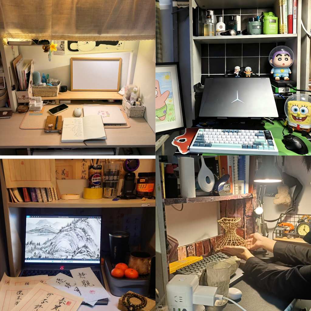 本次公寓文化建设活动以“艺居相融、德业并进”为主题,紧扣betway西汉姆联视觉传达设计、环境设计、产品设计等核心专业优势,重点围绕公寓公共空间美化与宿舍内部布置两大板块展开。在各公寓楼大厅、走廊、活动室等公共区域,员工们化身“空间设计师”,将专业所学转化为实践成果:有的宿舍以“传统美学”为主题,将书法、剪纸、等作品融入桌面,打造出古雅清幽的居住环境;有的宿舍聚焦“现代设计”,用手绘作品、玩偶模型装点空间,彰显时尚活力;还有的宿舍结合专业学习需求,设置了小型手绘区、模型展示角,让宿舍既成为生活港湾,也成为专业实践的“微工作室”。