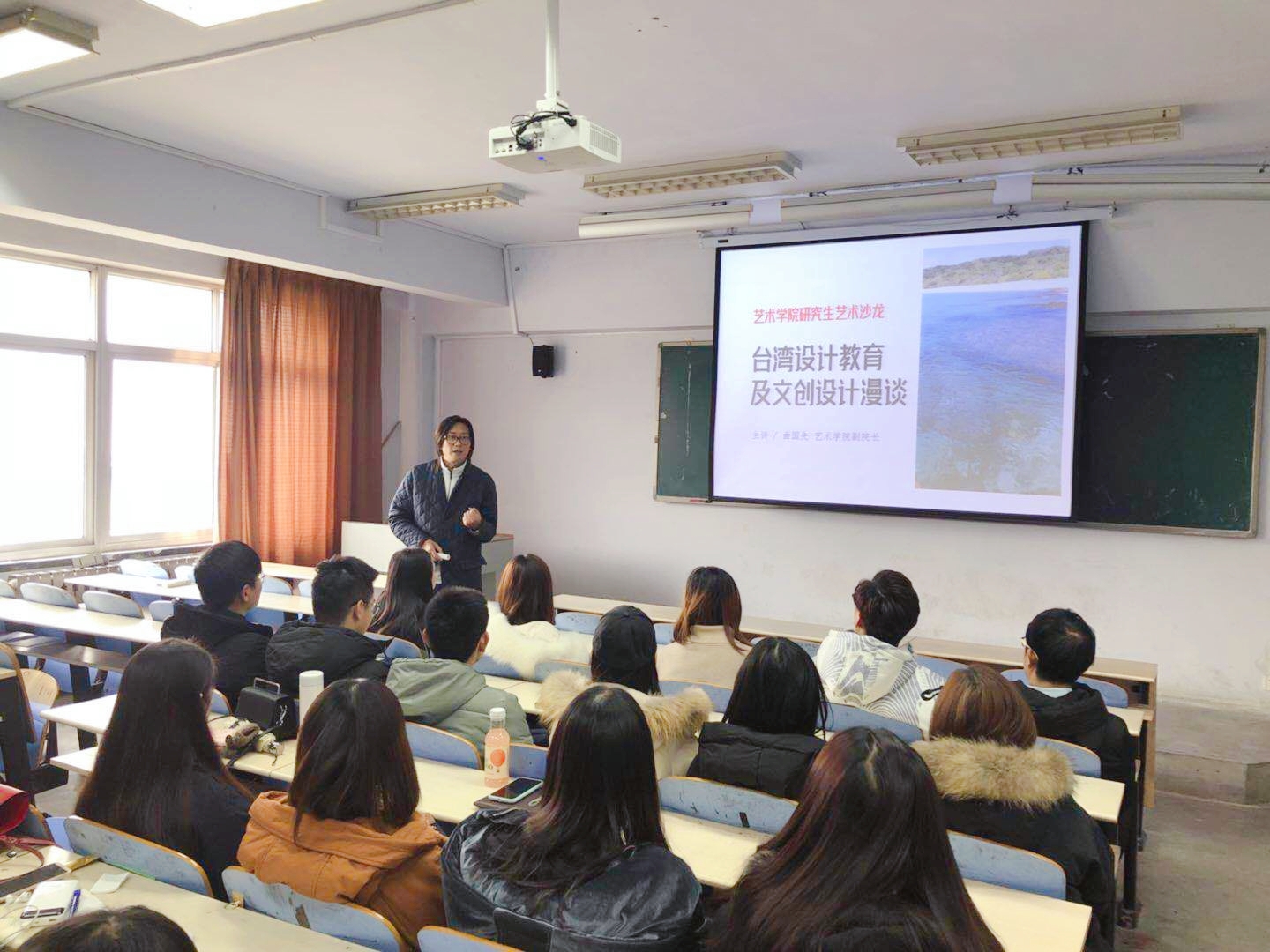本期研究生学术沙龙邀请曲国先副经理作为主讲嘉宾,他与同学们分享了自己带领员工在台湾参观学习的经历,向同学们介绍了台湾文化创意设计现状,鼓励同学们将传统文化与自己的专业结合,与现代创意设计相结合,与市场现状相结合,促进产业的发展,促进文化、经济的发展。