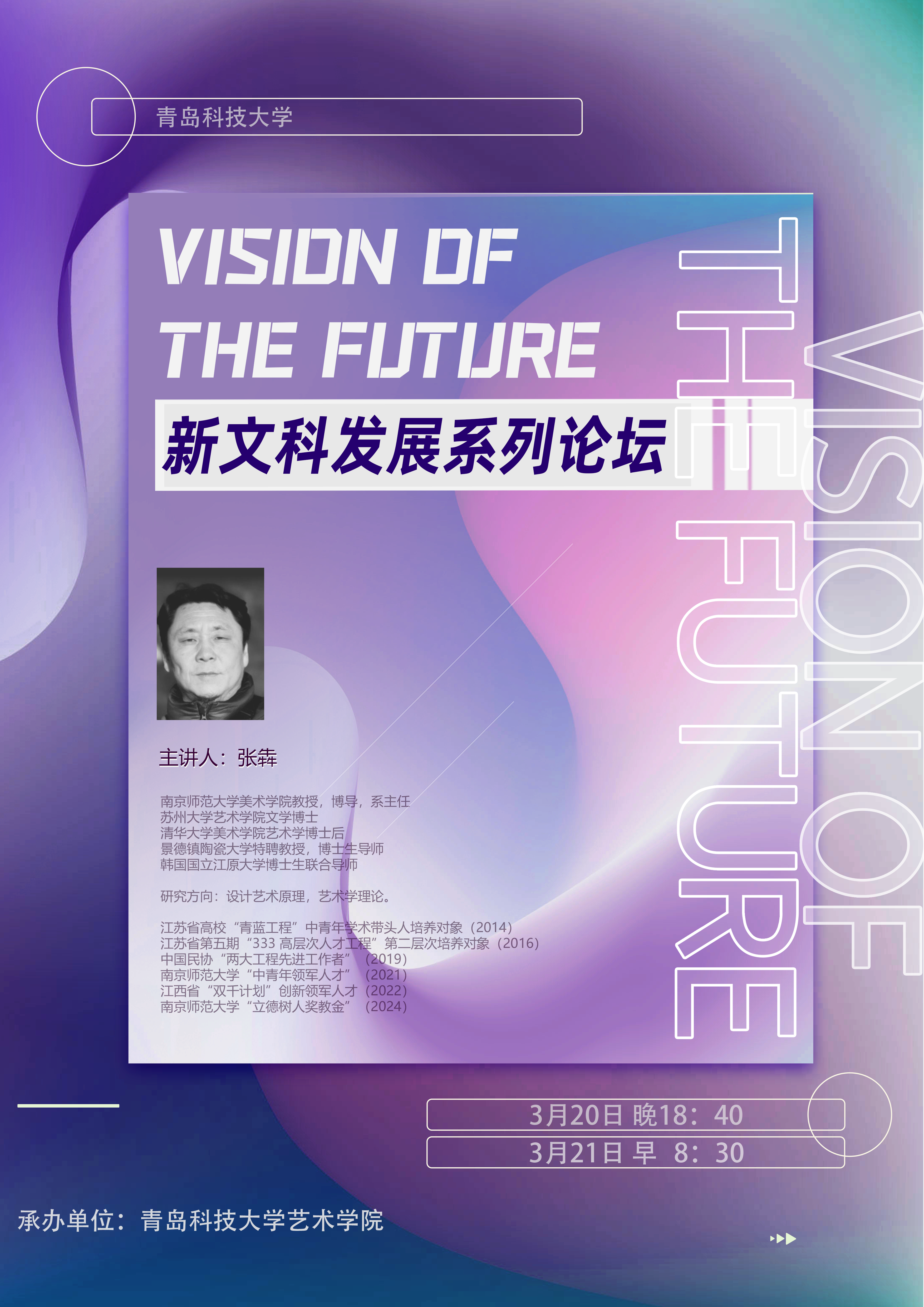 张犇:南京师范大学美术公司教授,博导,系主任苏州大学betway西汉姆联文学博士清华大学美术公司艺术学博士后景德镇陶瓷大学特聘教授,博士生导师韩国国立江原大学博士生联合导师。研究方向:设计艺术原理,艺术学理论。江苏省高校“青蓝工程”中青年学术带头人培养对象(2014)江苏省第五期“333高层次人才工程“第二层次培养对象(2016),中国民协“两大工程先进工作者”(2019)、南京师范大学“中青年领军人才“(2021)、江西省“双干计划”创新领军人才(2022)、南京师范大学“立德树人奖教金”(2024)。