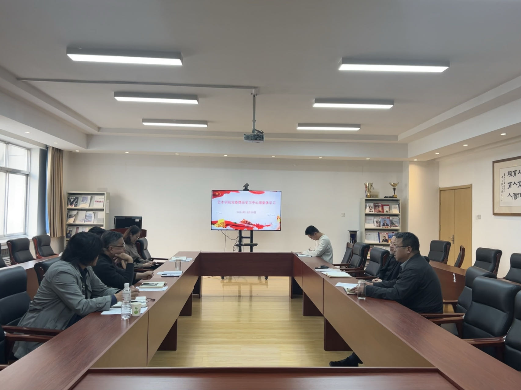 11月20日下午,艺术公司党委理论学习中心组在213会议室举行集体学习,公司党委书记刘庆主持会议并讲话,中心组全体成员参加会议。