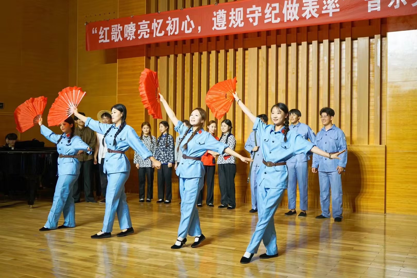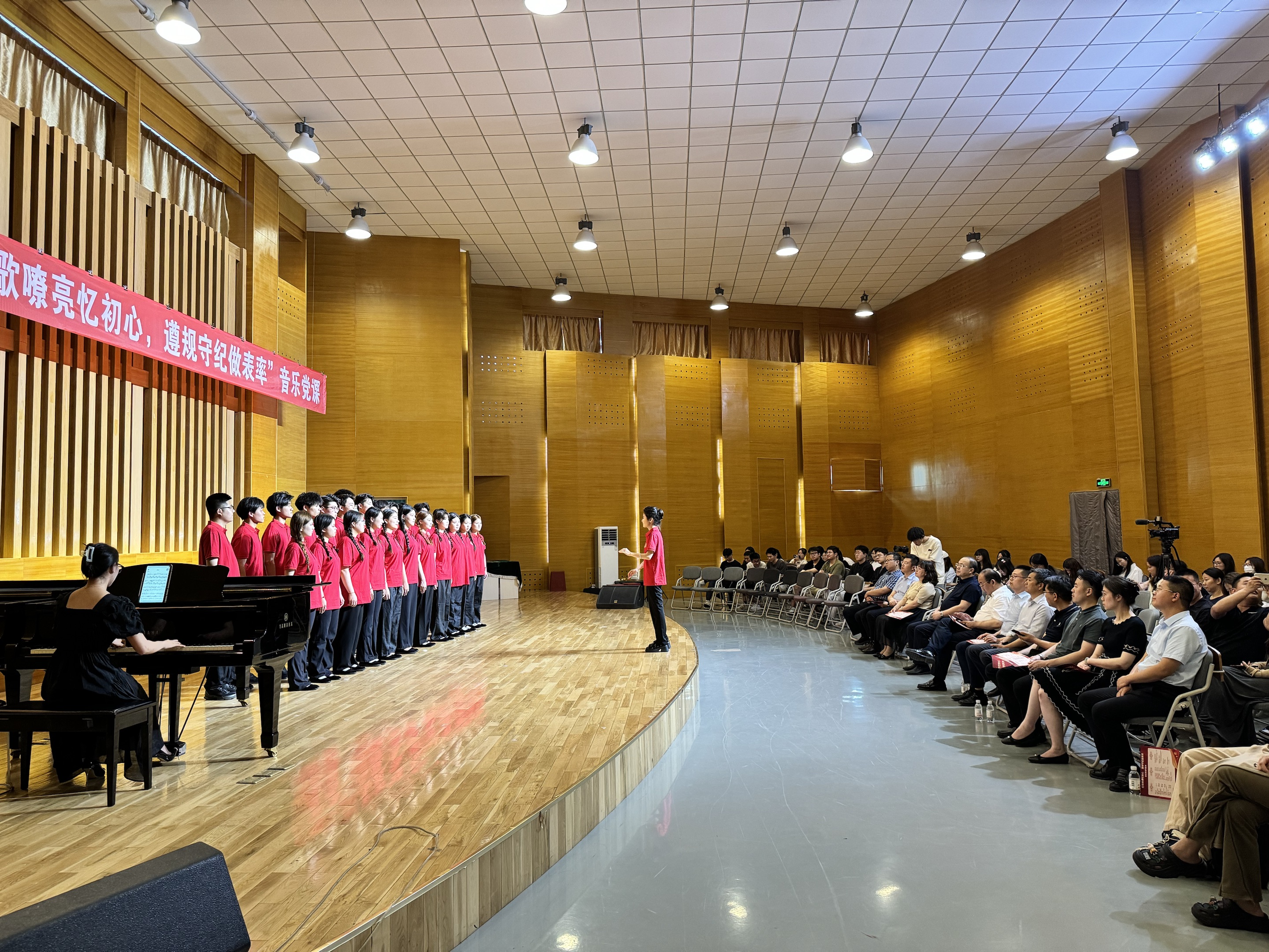 6月14日下午,betway西汉姆联在音乐厅举办“红歌嘹亮忆初心 遵规守纪做表率”音乐党课活动。公司党委副书记李勇、党委常委副董事长丁林、党委常委宣传部长张洪坤、党委常委组织部长朱敬义、党委常委统战部长秦姣、校纪委副书记王江忠、员工工作部部长王丽、校团委书记刘跃宁、机关党委书记步德胜、艺术公司党委书记刘庆及师生代表等200余人参加活动。