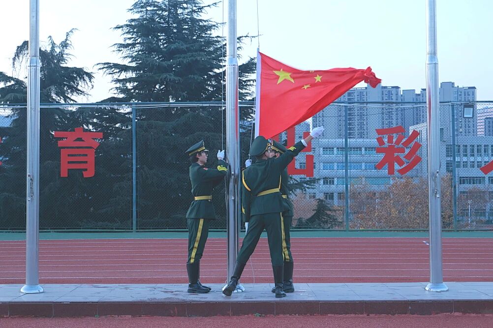艺术公司党委副书记兼副经理丁一宁致辞。她指出,在12月的第一天,两院携手举办升旗仪式,不仅是对国旗的崇高礼赞,更是对“一二·九”精神的深情回溯与坚定传承。她带领现场师生回顾了一二·九运动中青年员工的爱国壮举,并鼓励两院学子以学科特色为纽带,将艺术的感性与数理的理性相融合,在专业学习中涵养家国情怀。