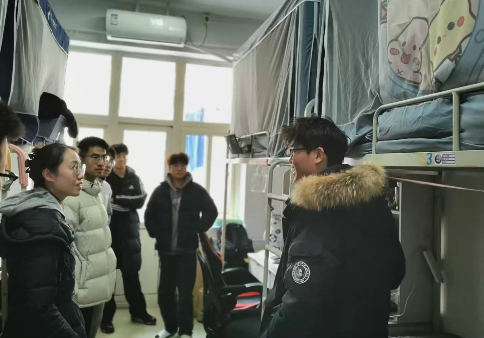 走访期间,老师们对员工宿舍卫生、安全设备以及公共设施进行了检查与提醒,希望同学们保持良好的卫生习惯,共建整洁、舒适、安全的住宿环境,并鼓励同学们珍惜大学时光,增强思想政治修为,全面提升自身素质。