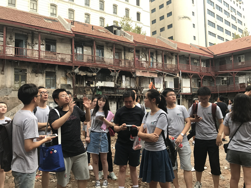 (在青岛里院进行实地调研)