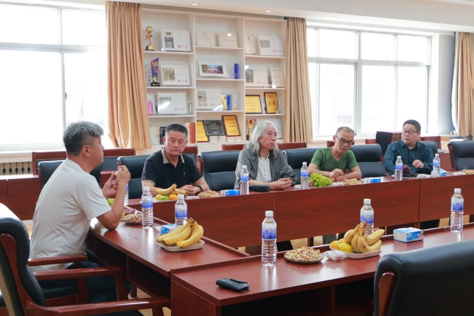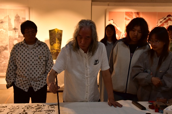 创作间隙,员工们围绕“新时代书画艺术的传承与创新”展开深度研讨,结合自身创作经历,就“传统书画技法与当代审美融合”“书画作品的时代表达”“青年书画人才培养路径”等议题建言献策。“青年学子要先扎稳传统笔墨根基,再从生活与时代中汲取灵感,才能创作出有温度、有力量的作品。”员工们的分享,为在场师生带来了前沿的艺术理念与实践经验。