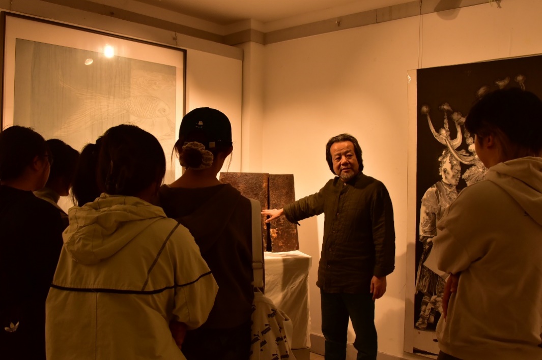 针对书画专业新生,李宏文经理以各位员工和教师为例,从技法锤炼、灵感捕捉、职业规划等方面倾囊相授。“多去校园角落写生,多和师长同学切磋,艺术的养分就藏在这些日常里。”2025级新生在聆听后,对艺术之路有了更清晰的方向。看着展厅内陈列的优秀的师生书画作品,对比自己求学时的创作条件,纷纷为公司书画教学硬件升级、人才培养成果点赞。