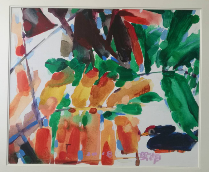 2009--2010年水彩《阳光下的树叶》绘画系列2001—2008年完成青岛三生缘文化艺术展览馆、青岛小绍兴餐饮有限公司、天府老妈、哥弟服装、书院商城、北方国贸第一商城等环艺设计及文化体系建设